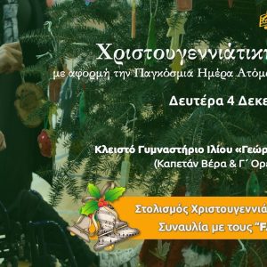 19:30 Χριστουγεννιάτικη γιορτή για μικρούς και μεγάλους από το Κέντρο Γυναικών Ιλίου & τη Θεατρική Ομάδα ΟΝΕΙΡΟΒΑΤΕΣa Θέατρο «Άννα Συνοδινού» του Πολυδύναμου Κέντρου «Μίκης Θεοδωράκης»